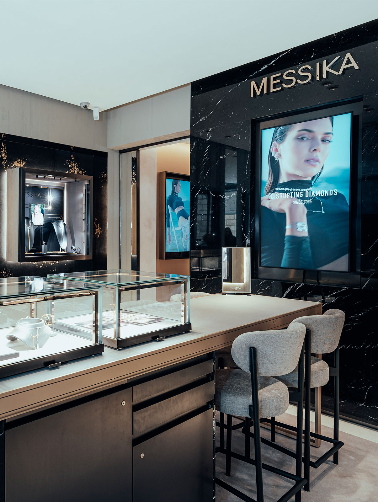 يتم تصميم مجوهرات الماس من ميسيكا بشكل مبتكر وجريء ويمكن اكتشافها في الحياة الواقعية. تمثّل متاجر الدار واجهة آسرة بين العملاء والماسات. يبقى التصميم وفيًا لمفهوم المصمم في متجر مرسيليا حيث تُعرض مجموعة متنوعة من المجوهرات تضم آخر الإصدارات من الدار بالإضافة إلى القطع الأيقونية لتصبح كل اللحظات قيّمة واستثنائية.