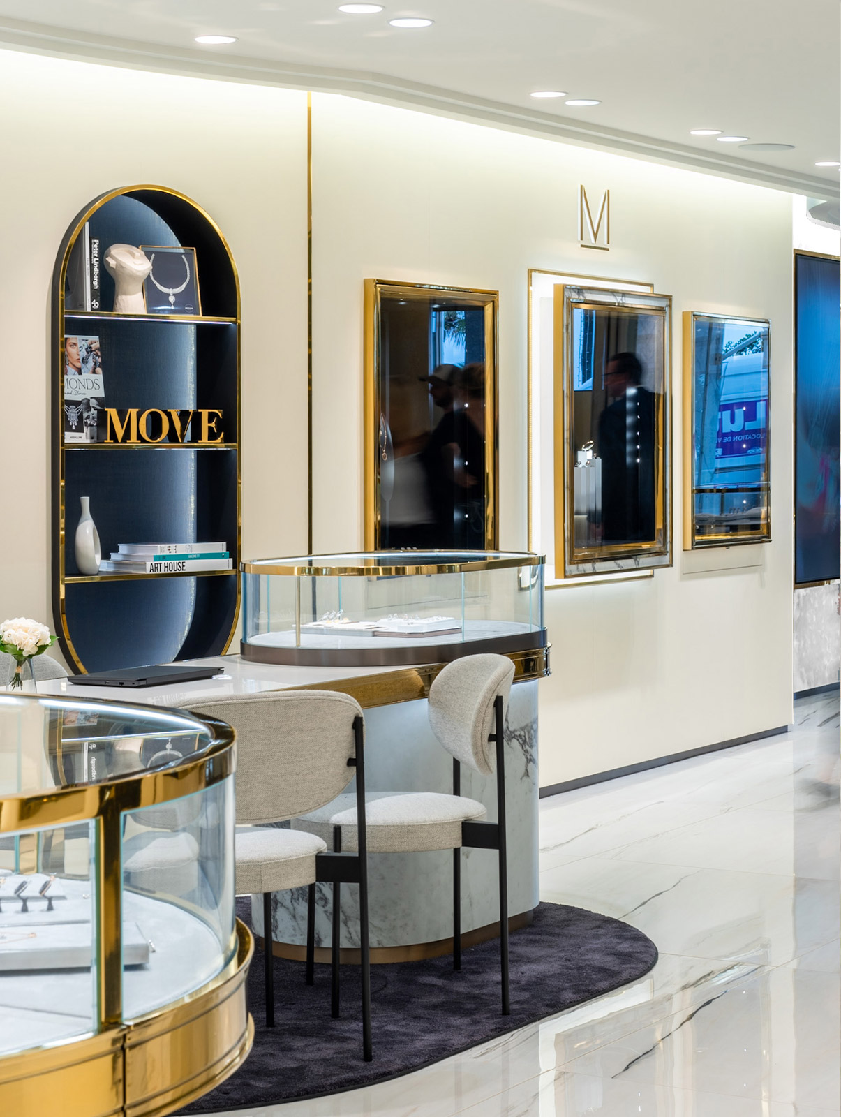 The diamond solitaires and jewelry in Messika's (E)motion collection, which celebrates the most beautiful of moments, are showcased in this boutique like no other. The same applies to High Jewelry, as some of the most precious models, including the recent Beyond the Light collection, will be available in the boutique.