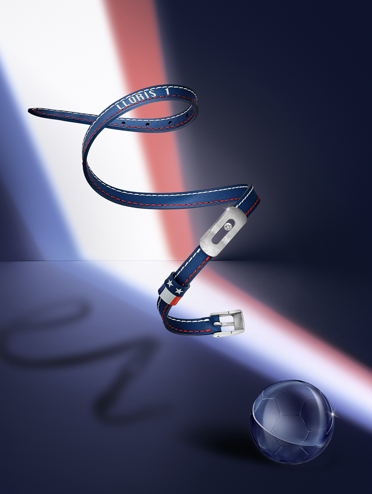 Le nouveau must-have de la Maison, le bracelet diamant interchangeable My Move, décliné en titane et orné d’un diamant mobile, s’habille alors d’un bracelet en caoutchouc bleu marine, surpiqué de blanc et rouge. Doit-on rappeler que l’étymologie du mot diamant est Adamas en grec, qui signifie « invincible » ? Enthousiaste ambassadeur, le capitaine Lloris choisit d’offrir ce bracelet de luxe à tous ses coéquipiers et leur compagne, première supportrice, pour matérialiser ce lien si unique qui les fédère tous. Tel un bijou de clan, ce bracelet rappelle le rôle ritualisé et sacré que joue l’ornement depuis toujours. Alors invincible l’équipe de France ? On le lui souhaite. Mais surtout on se rêve à vibrer, pleurer, frémir, sourire ensemble à ses côtés ! Allez les Bleus !