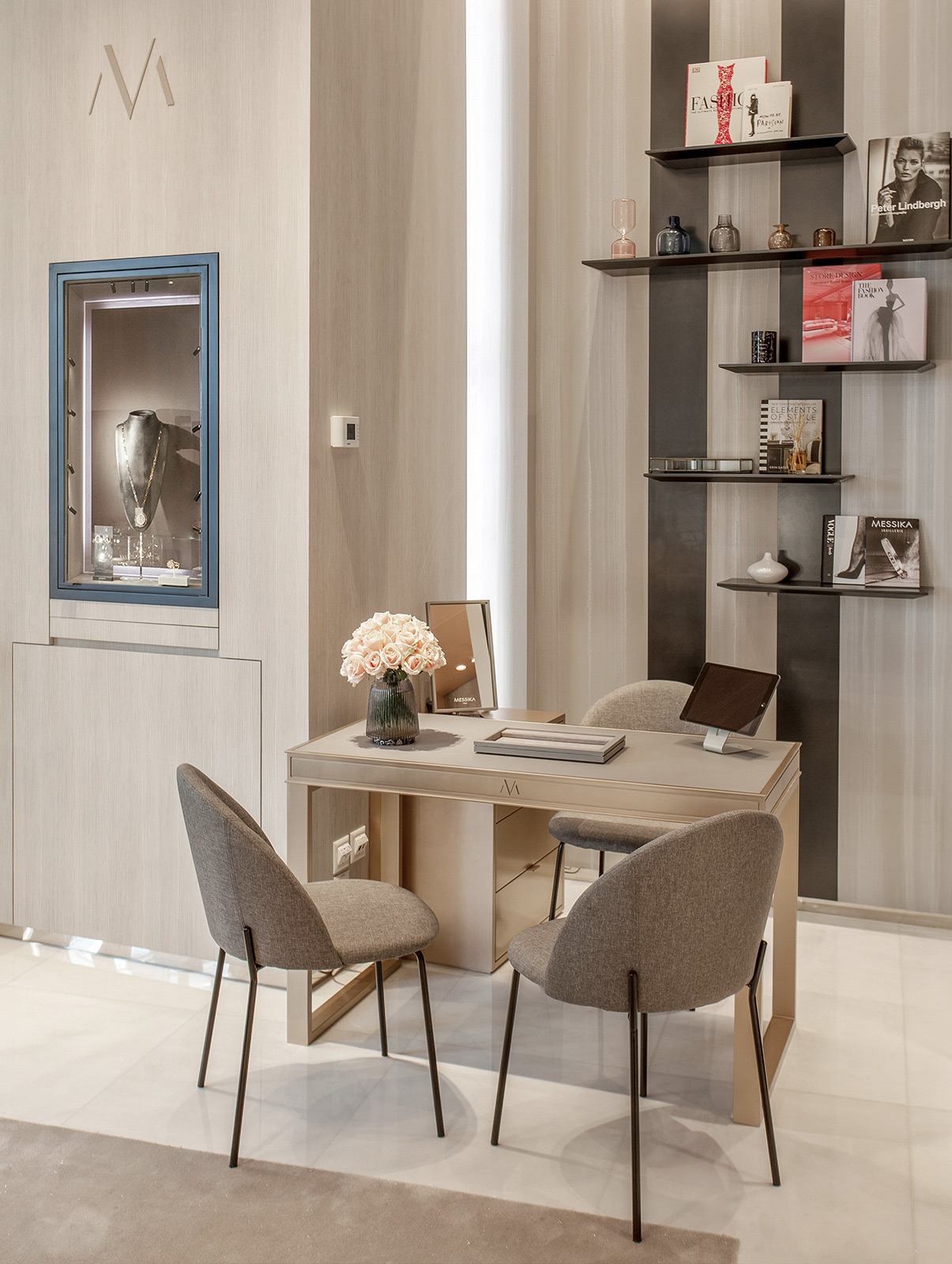 La boutique de 53 m², situada en el maravilloso Hôtel Longemalle, fue diseñada por Valérie Messika, fundadora de la Maison.