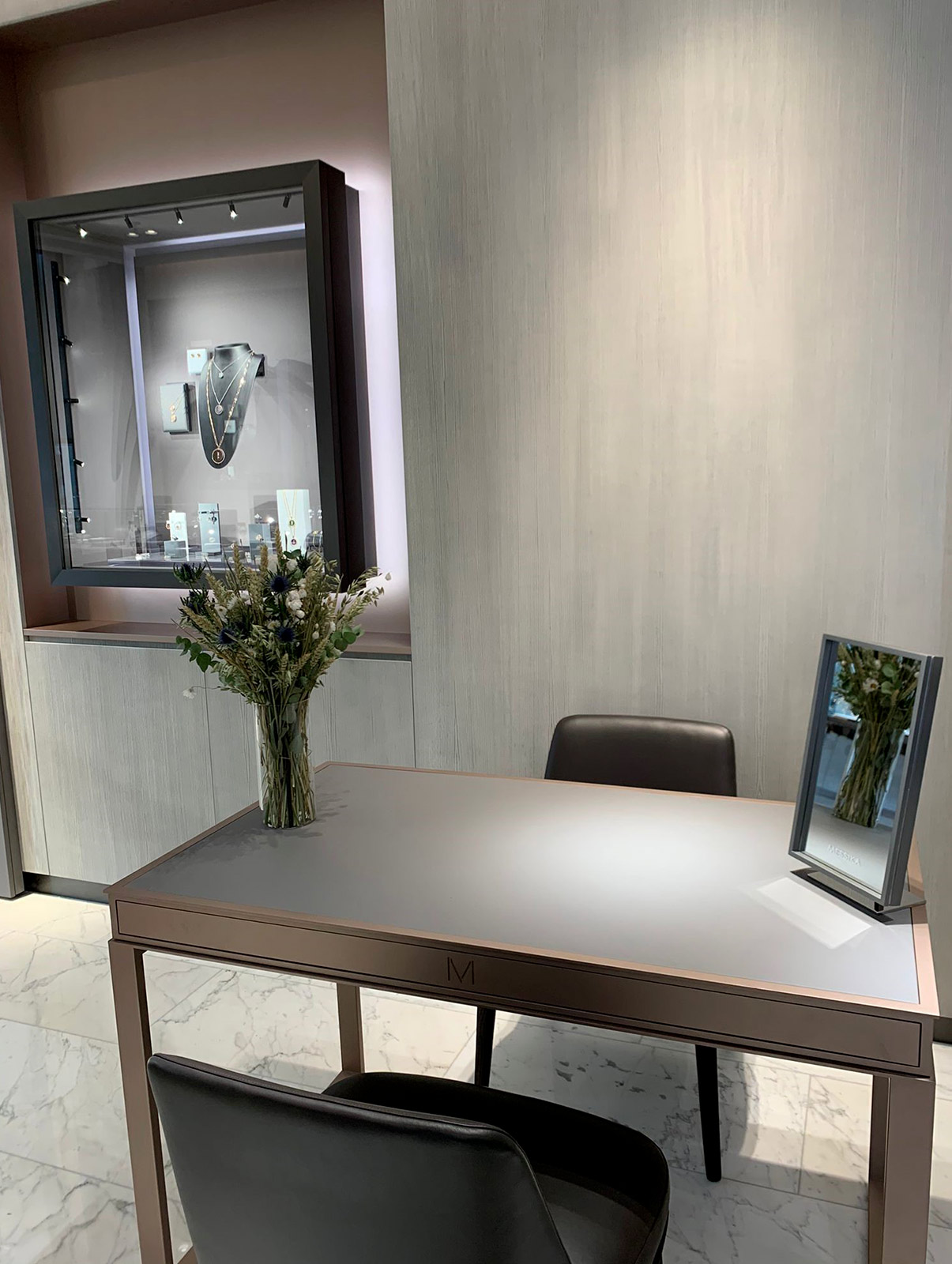 En colaboración con Les Ambassadeurs, esta nueva boutique de 32 m² está situada en el centro de la ciudad de Luxemburgo y ha sido concebida por la fundadora, Valérie Messika.