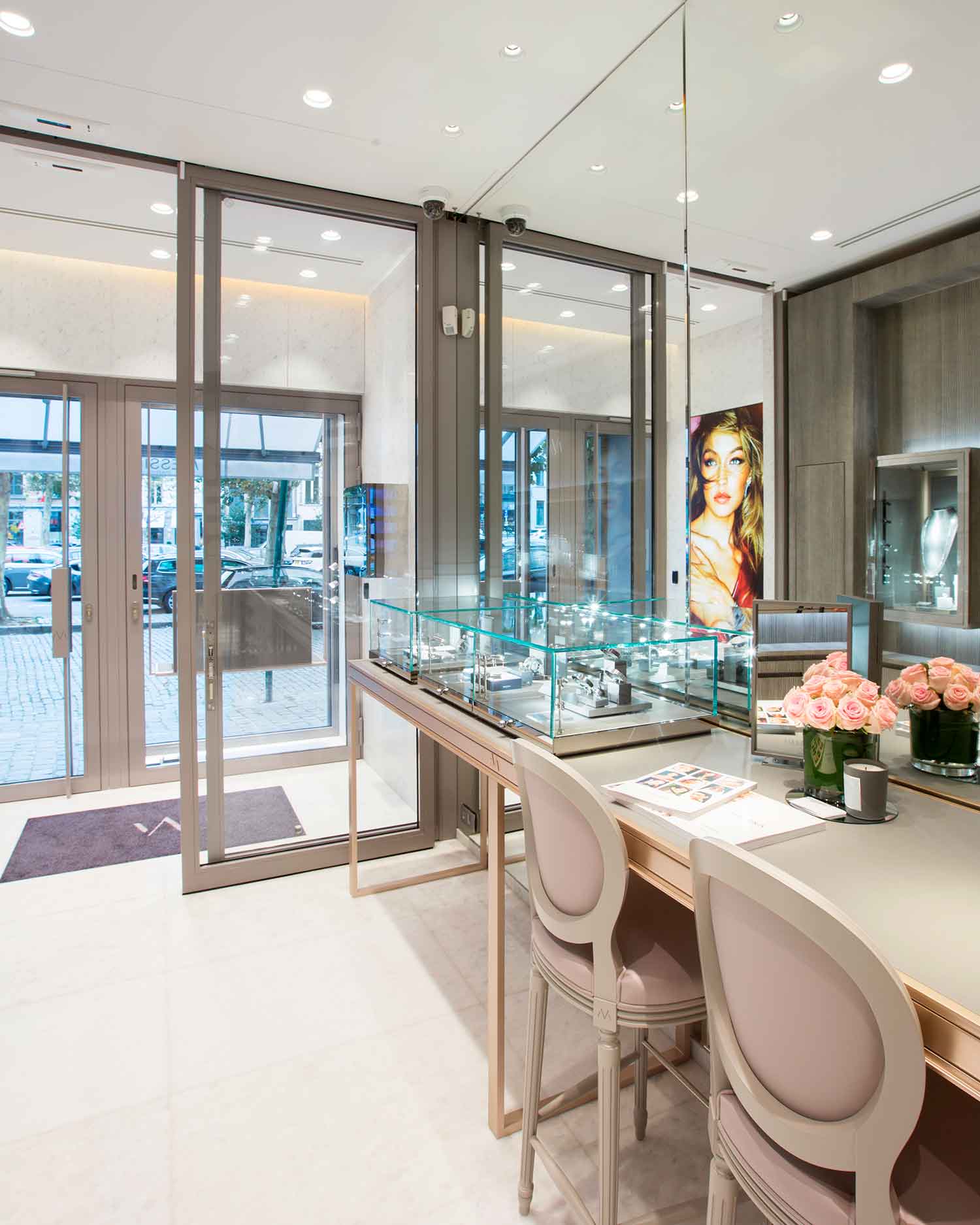 La boutique est l’incarnation des valeurs Messika : une parfaite balance entre douceur des colories, matériaux, et force du graphisme. Dans les beaux quartiers des Sablons, la boutique se situe dans le centre de Bruxelles.