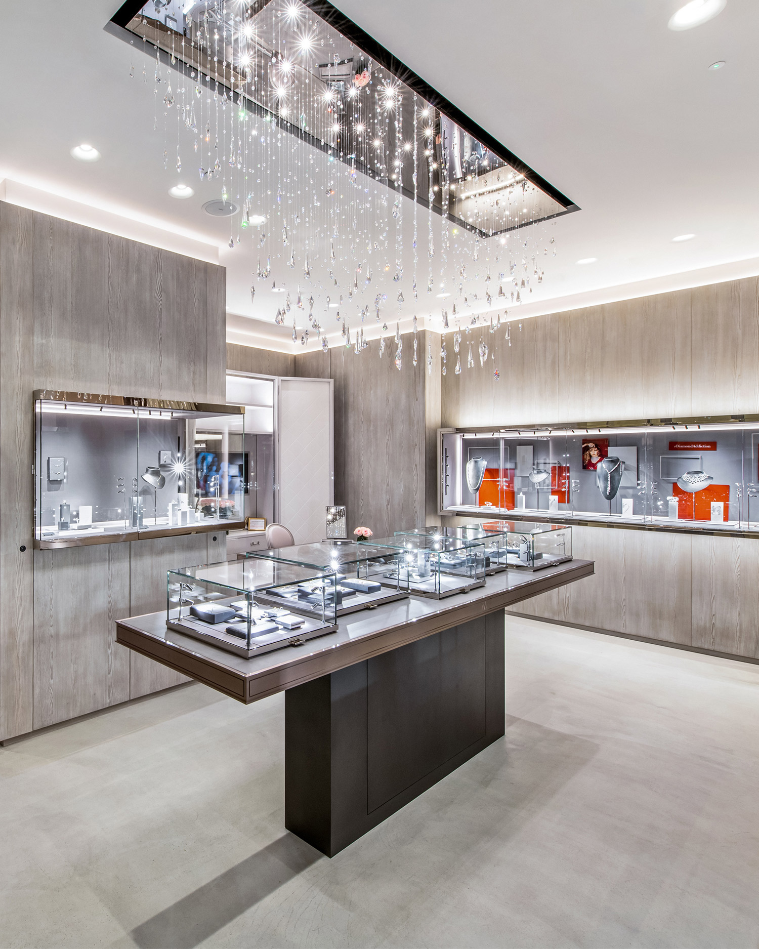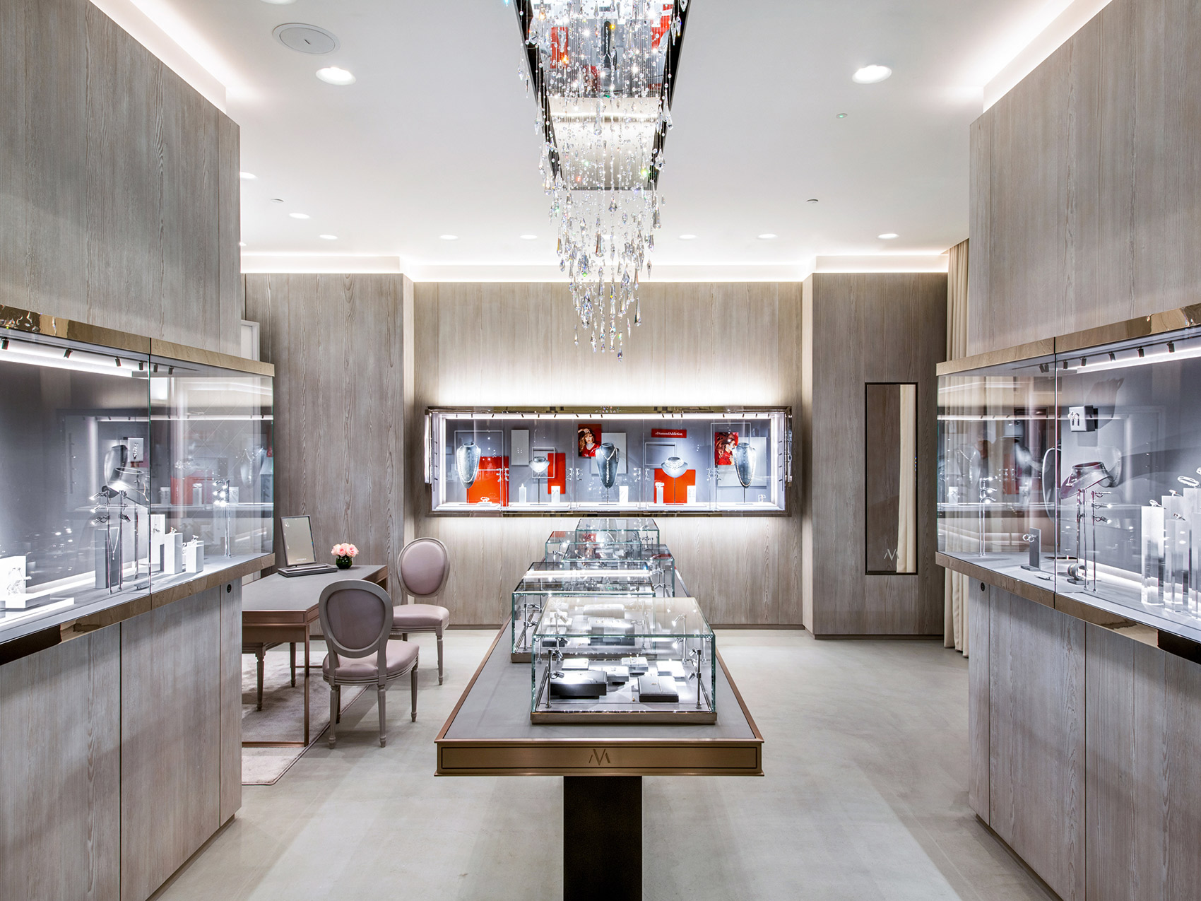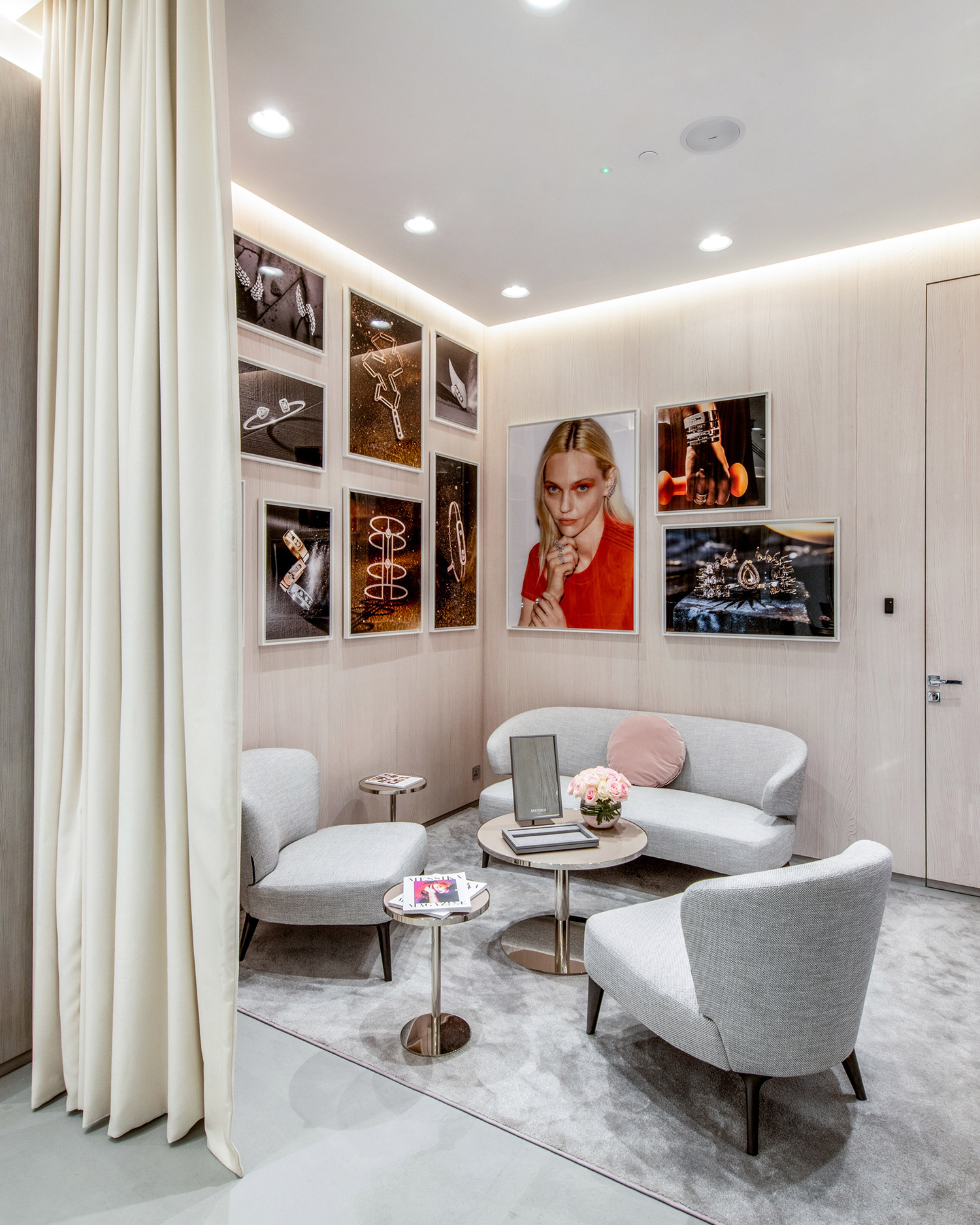 Afin de créer un lieu unique et sur-mesure, chaque détail a été imaginé par Valérie Messika, de l’atmosphère olfactive à l’ambiance sonore.