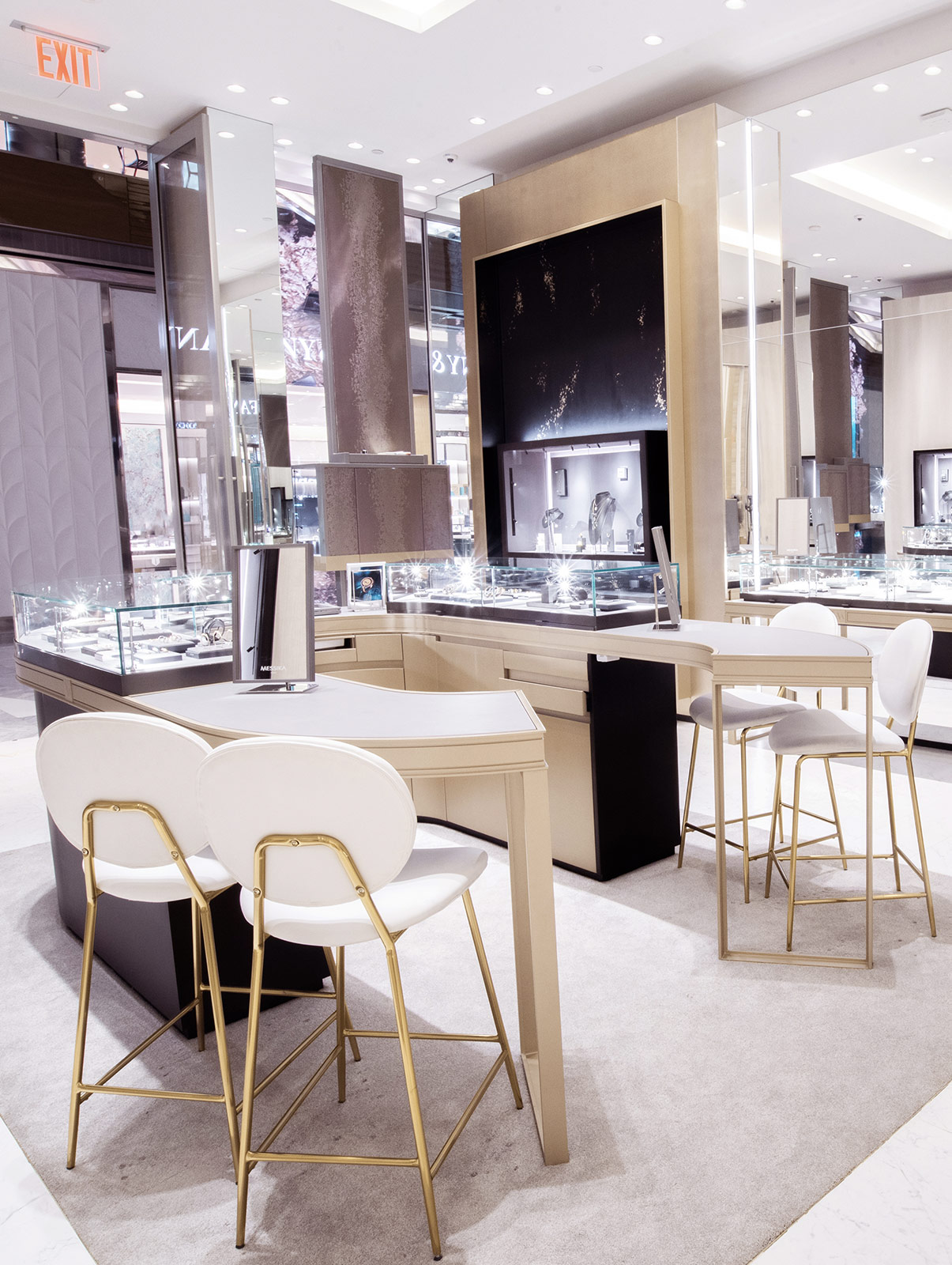 La boutique de 93m², située dans le magnifique quartier de Hudson Yards, a été imaginée par la fondatrice de la maison, Valérie Messika. Dès son entrée, le client est plongé dans l’univers de la marque. Symétrie du design, transparence des vitrines, sols en marbre et détails de couleur noirs, Valérie Messika crée un environnement magique pour ses collections diamant.