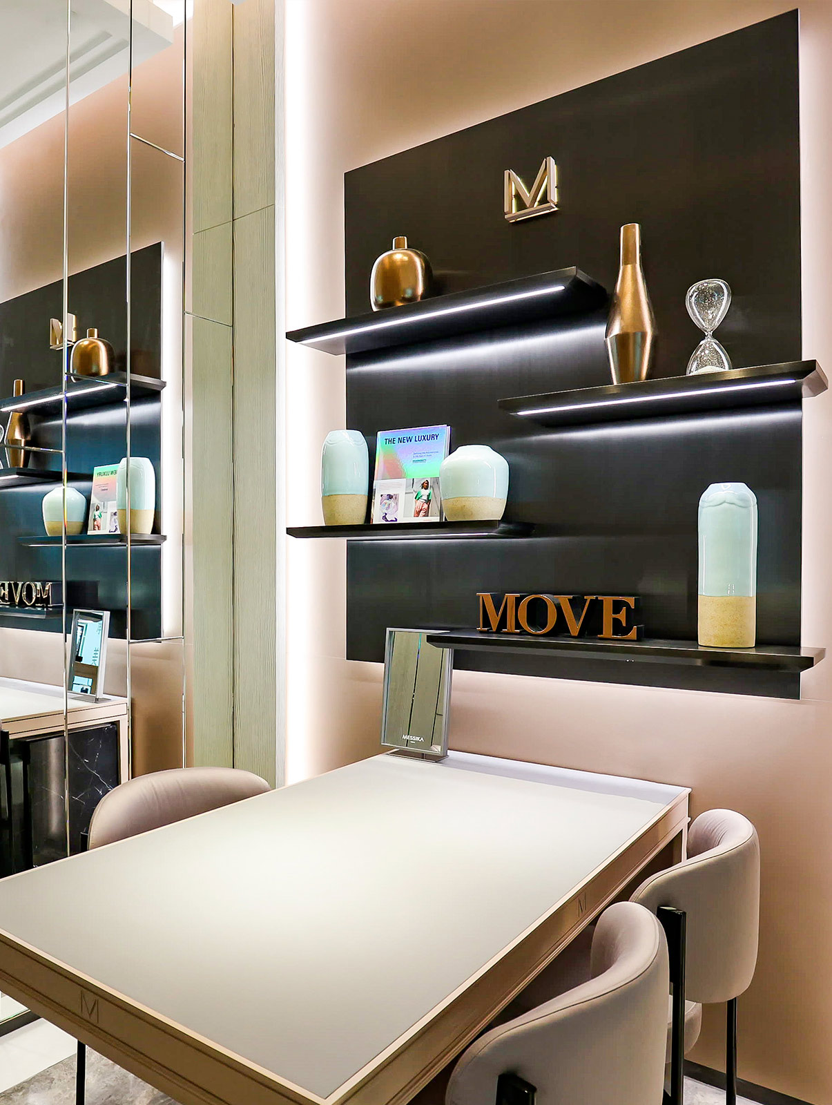 Le design asymétrique, les vitres transparentes, le marbre noir et chacun des détails font ressortir l'éclat éblouissant de chaque bijou en diamant. Toutes les collections de Joaillerie iconiques sont présentées : Move, Glam'Azone, My Twin ou encore Lucky Move.