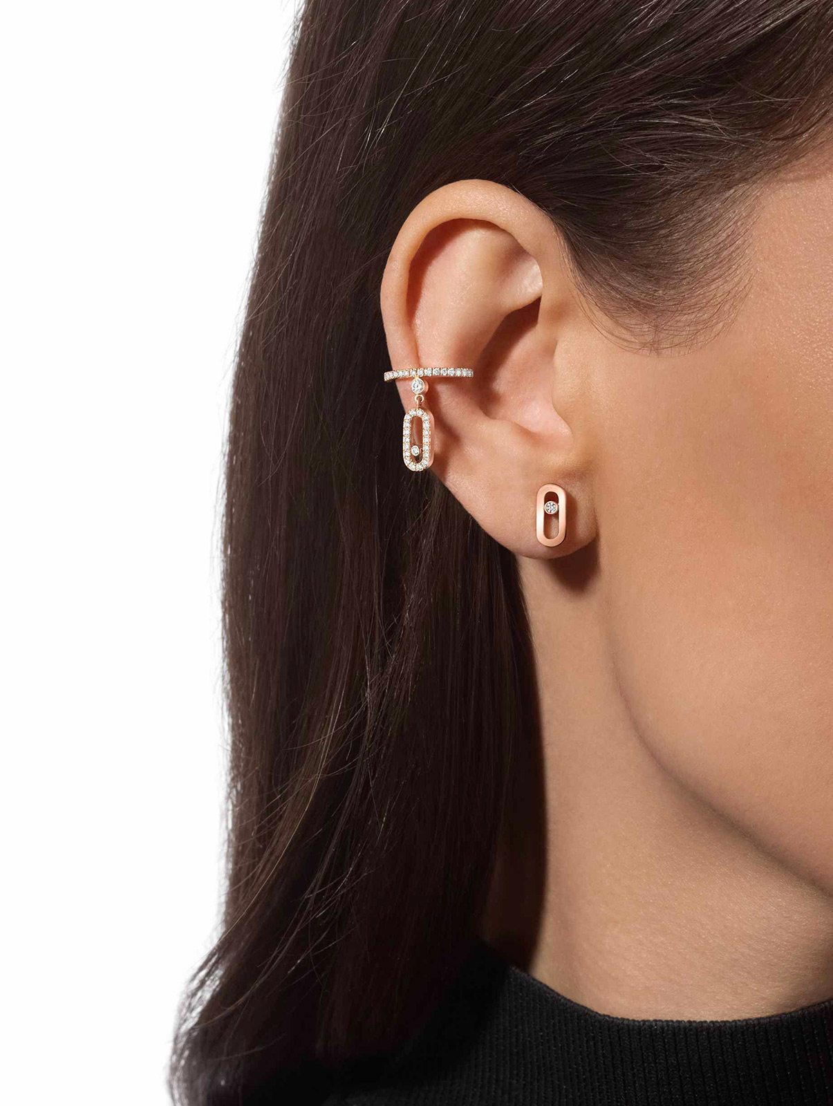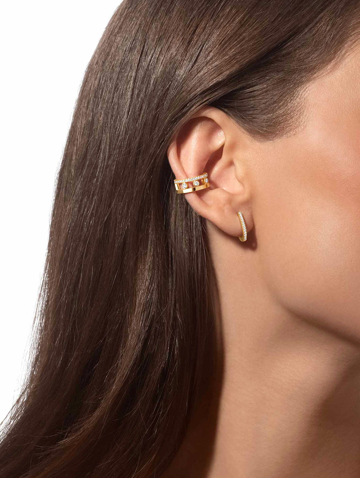 Choosing a diamond mono clip earring means showing off your rock & roll side. Embrace the modernity of wearing gold and diamonds on your ears and participate in the multi-accessory trend by combining your Messika mono clip diamond earring with the Maison’s other earrings. Or go for an asymmetric look with the Move Uno Pampille Pavé mono clip earring, a radiant gold and diamond piece set with dazzling stones.