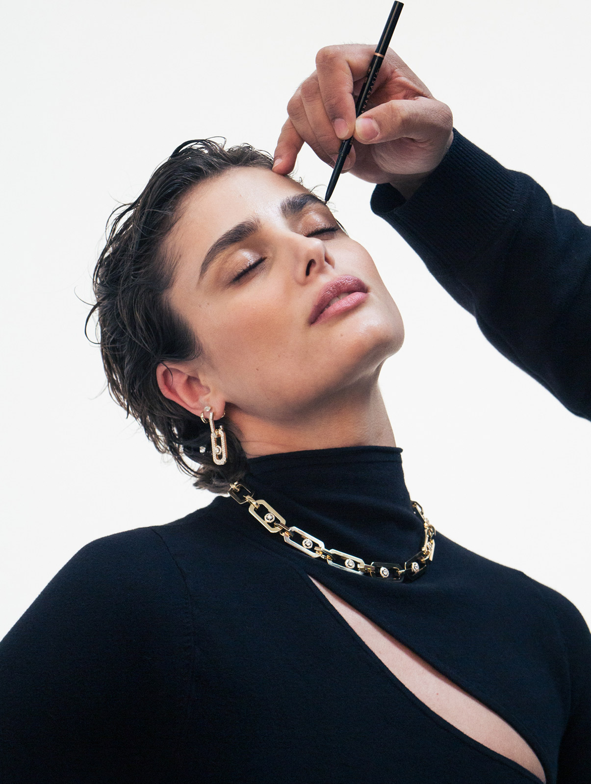 クールで洗練された若きアメリカ人モデルであり、現在、あらゆる規範を打ち破るテイラー・ヒル。ショートヘアで、自由な、自立した彼女は、新たな視点で自身を表現します。ミラーと外観美を巧みに組み合わせた《ソー ムーヴ》コレクションのパワーとエネルギーは、こうしたすべての面を完璧に反映し、独創的なXXLジュエリーがスタイルの変化を際立たせています。ゴールドのパワー、ダイヤモンドの煌き、グラフィカルなライン。メシカ ダイヤモンドジュエリーは単なるアクセサリーを超えて、独特な感情を高揚させます。