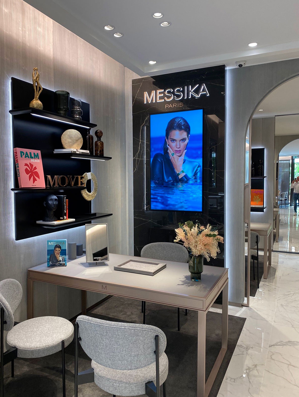 ラグジュアリーとモダニティを掛け合わせたこの新しいブティックは、無駄のないグラフィカルなラインが特徴的。ブラックとホワイトの大理石を組み合わせた、エレガントでミニマルな内装に仕上げられています。ディテールの一つ一つに、メゾンが誇るありとあらゆる価値観とサヴォワールフェールが投影されており、メゾンの創業者、ヴァレリー・メシカがデザインした温かみのある本物の空間に浸っていただけます。
