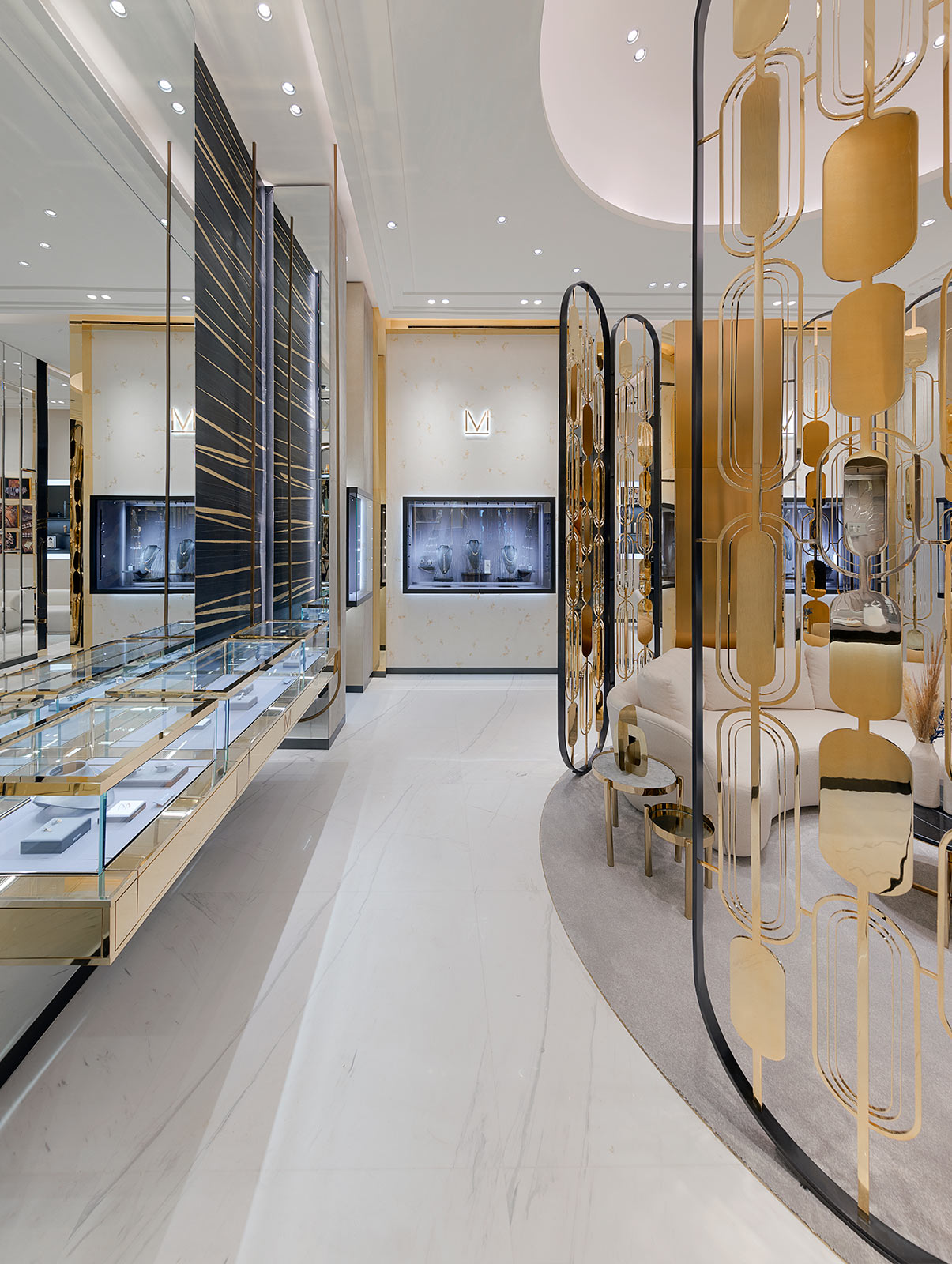 ブティックに入るとすぐメシカの世界に入り込むことができます。そして、ダイヤモンドジュエリーや最新のクリエイション、また、特別なハイジュエリーモデルをご覧いただけます。2つのプライベートVIPラウンジは、メゾンの美と贅沢、そして比類なき卓越した技術を追求する姿勢の表れです。