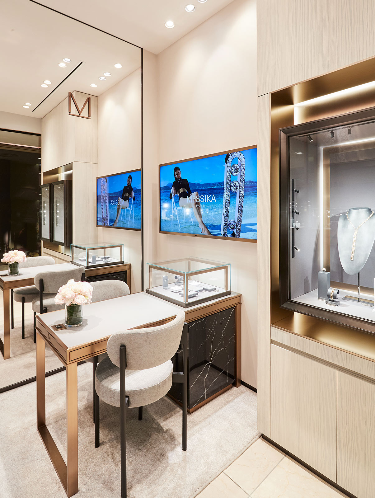 新しいブティックでは、メシカのシグネチャー《ムーヴ》コレクションをはじめ、《マイ ムーヴ》 、《ラッキー ムーヴ》、《ラッキー アイ》、《グラマゾン》、《マイ ツイン》など、メゾンのアイコニックなコレクションのすべてをご覧いただけます。同時に、パリのアトリエで製作される、大胆かつユニークなハイジュエリーコレクションもお楽しみいただけます。