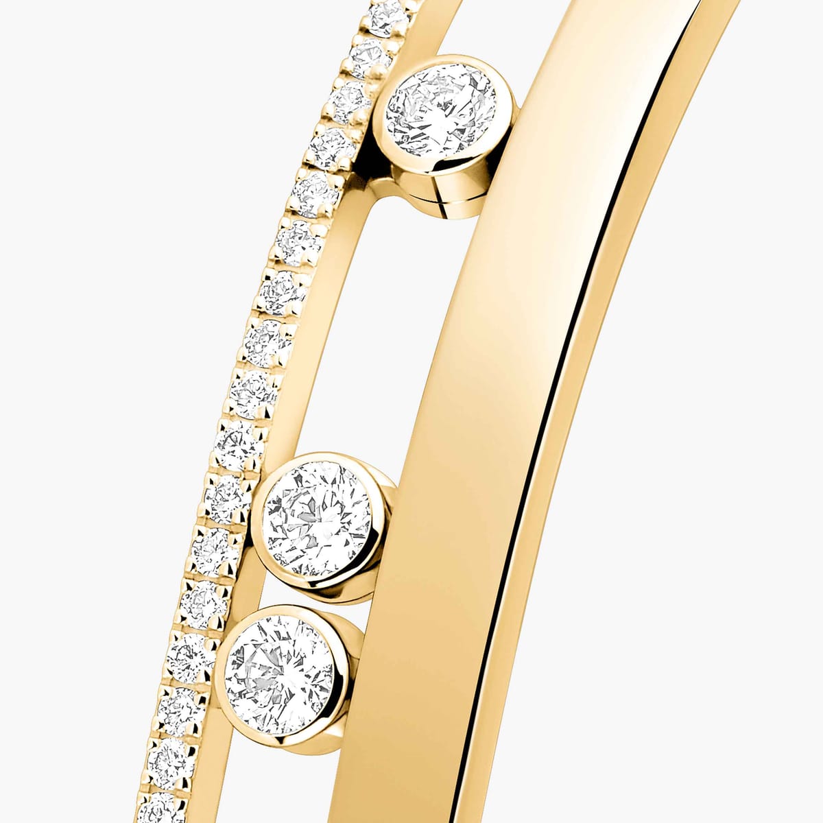Imaginez des diamants qui glissent entre vos doigts. Visualisez leur mouvement. L’éclat de leurs facettes qui scintille à chaque geste. La musicalité de ces gemmes qui coulissent doucement entre elles. L’émotion procurée par leur préciosité. Ce frisson, dès l’instant où, avec la plus grande grâce, ils effleurent votre peau. C’est de cette image hautement sensorielle qu’est né le Move, signature de la Maison Messika.